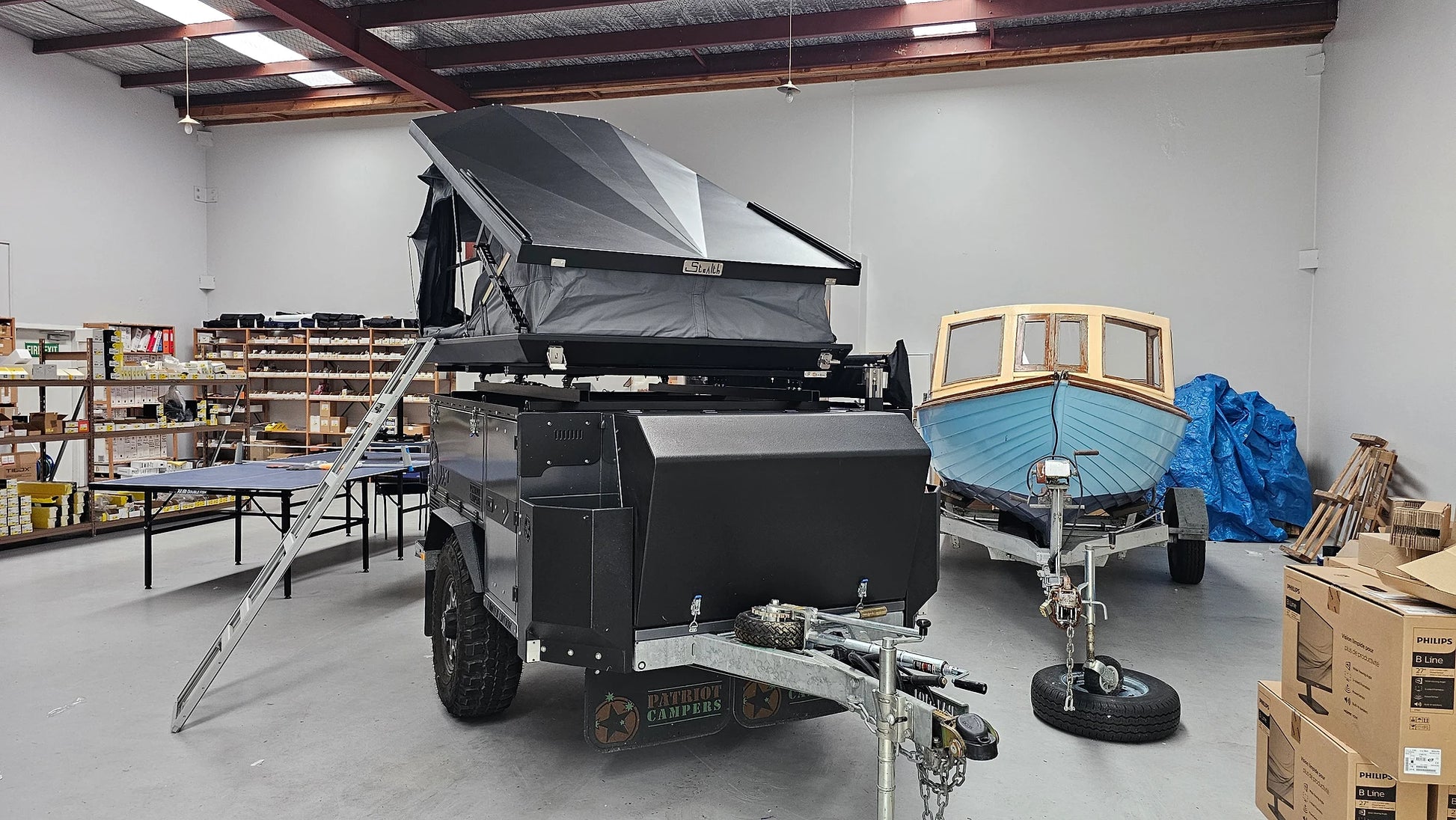 The ladder uniquely stores in a purpose built slot in the STEALTH's chassis, while the super aerodynamic shell is still able to accommodate your bedding.